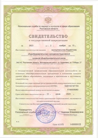 Свидетельство о государственной аккредитации